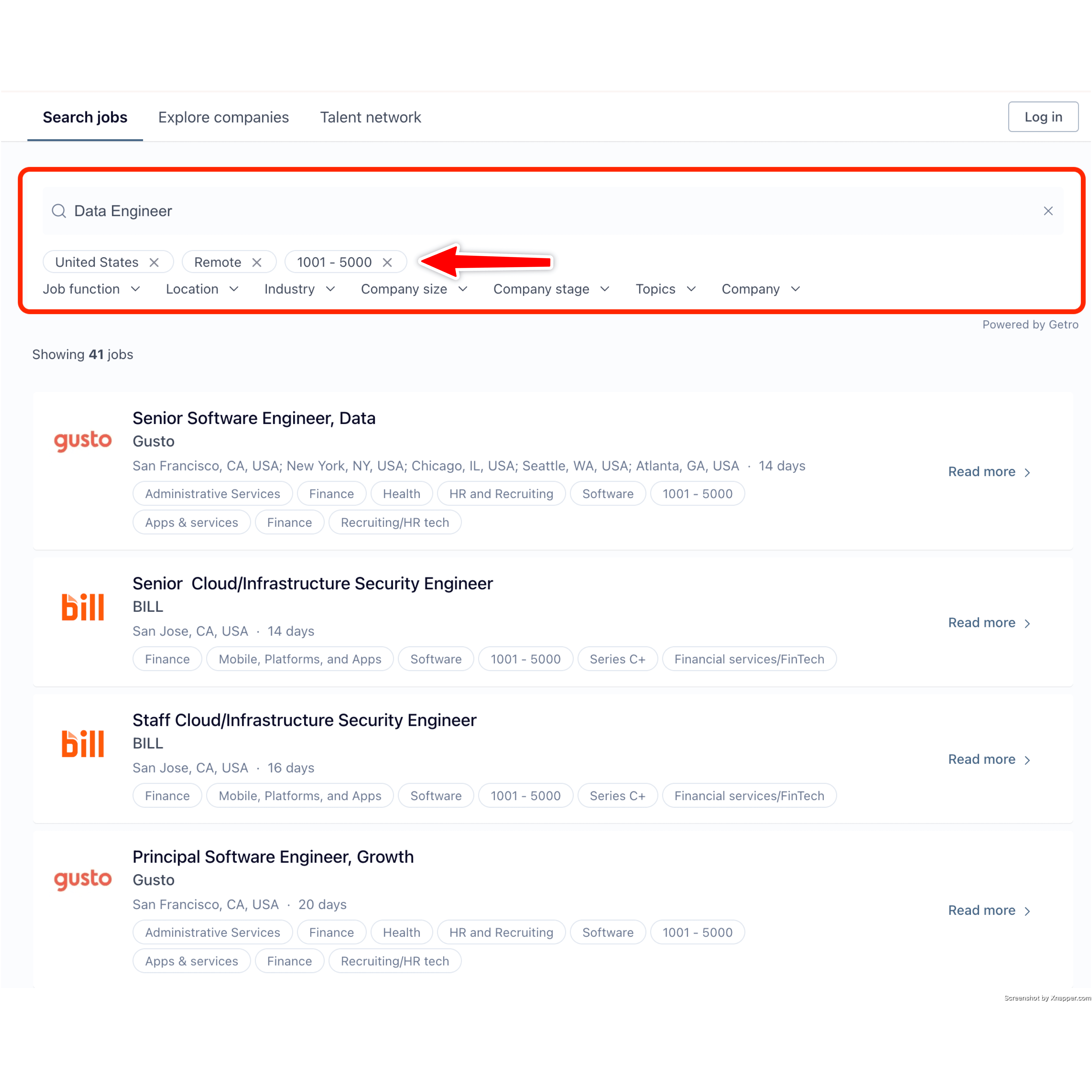 As you can see, 41 jobs for Data Engineers fit those criteria. Now, you see the open roles, and you decide that the role you want is the one from Gusto.