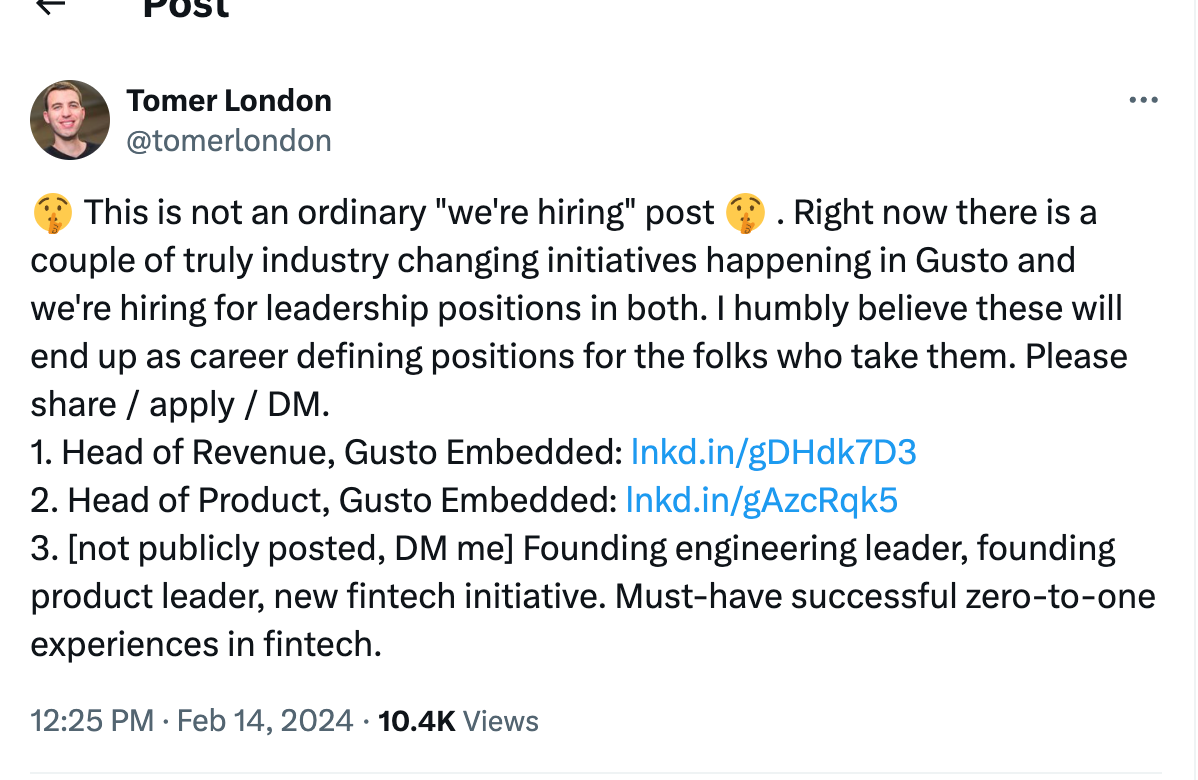 - And according to Tomer London (CPO and co-founder of the company), they are not just looking for Data Engineers: